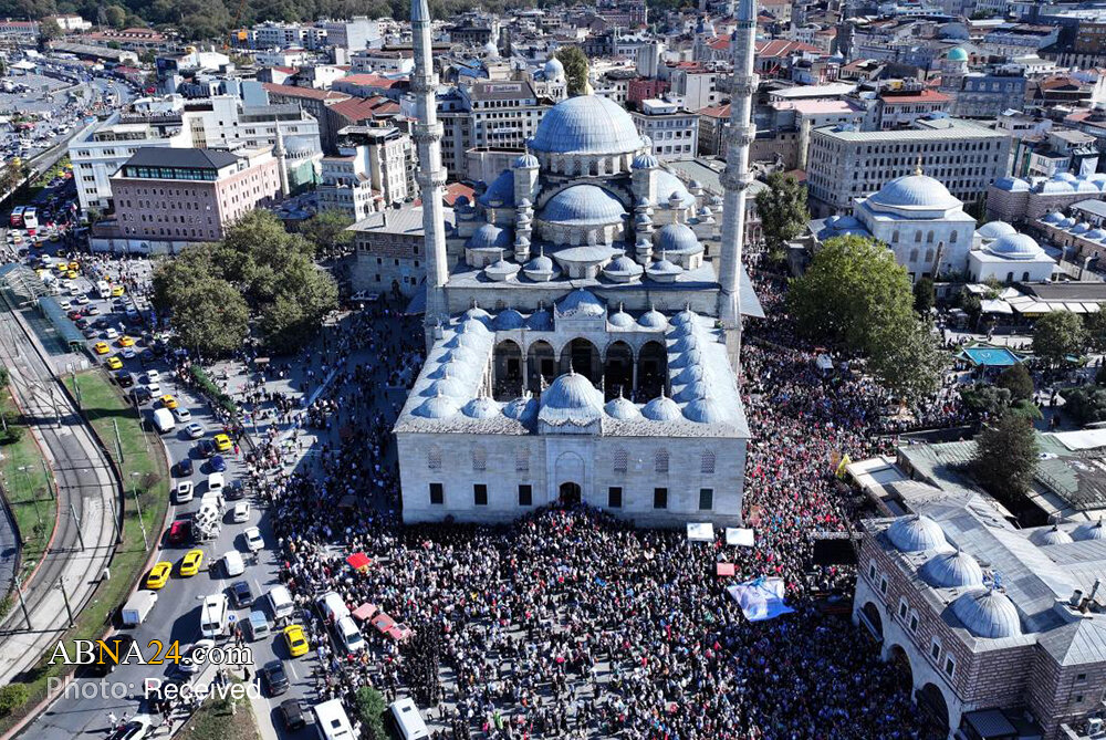 আহলে বাইত (আ.) বার্তা সংস্থা (আবনা): হাজিয়া সোফিয়া মসজিদের সামনে থেকে সমাবেশটি শুরু হয় এবং অংশগ্রহণকারীরা "আমরা স্বাধীনতার দিকে এগিয়ে যাচ্ছি" স্লোগান নিয়ে এমিনোনু স্কোয়ারের দিকে যাত্রা করে।