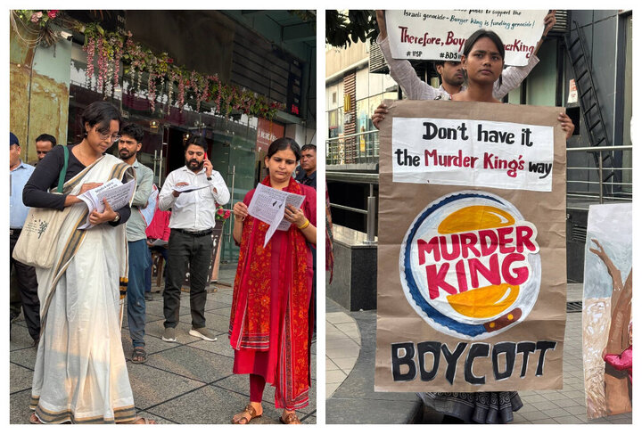 ইসরায়েলের প্রতি, কোম্পানির সমর্থন এবং ইসরায়েলি সৈন্যদের ব্যাপকভাবে খাদ্য স্ট্যাম্প বিতরণের প্রতিক্রিয়ায় নয়াদিল্লিতে ফিলিস্তিনি সমর্থকদের একটি প্রতিবাদ সমাবেশ বার্গার কিং শাখার সামনে অনুষ্ঠিত হয়।