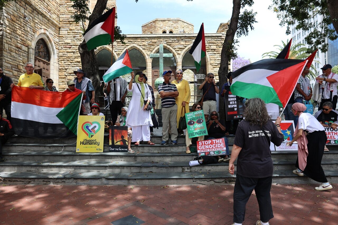 দক্ষিণ আফ্রিকার কেপটাউনের জনগণ এবং ধর্মীয় নেতারা গাজায় দখলদার শাসকগোষ্ঠীর ব্যাপক সহিংসতা ও হত্যাকাণ্ডের প্রতিবাদে টানা ১০৮তম সমাবেশে সেন্ট জর্জ চার্চের সামনে জড়ো হন। এই আন্তঃধর্মীয় অনুষ্ঠানটি ফিলিস্তিনিদের ক্ষতিগ্রস্থদের প্রতি আন্তর্জাতিক সম্প্রদায়ের সংহতির প্রতীক।