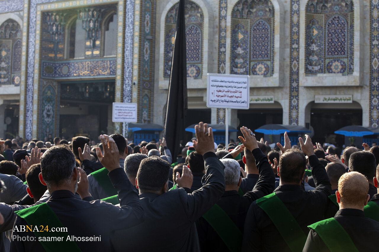 হযরত যাহরা (সা.আ.)-এর শাহাদাত বার্ষিকীতে, খাদেম ও যিয়ারতকারীরা হযরত আব্বাস (আ.)-এর মাজারে উপস্থিত হয়ে শোকগাথার মাধ্যমে ইসলামের মহান নারীর স্মৃতি ও মর্যাদাকে সম্মান জানান।