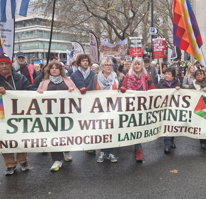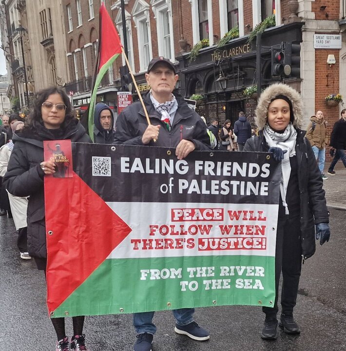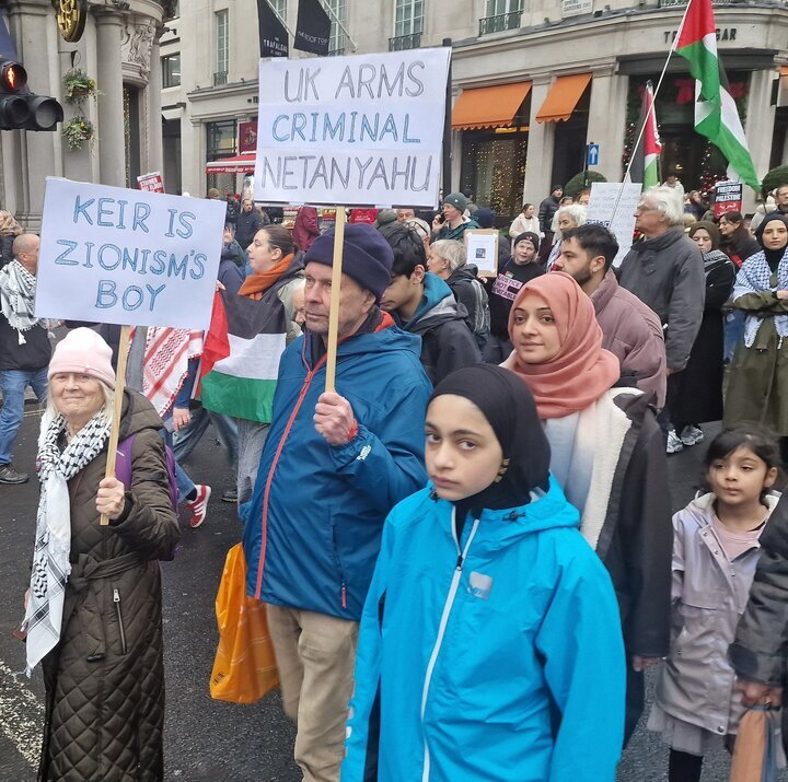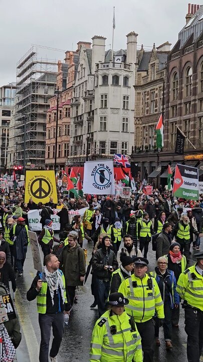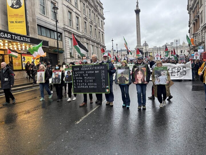 গাজা এবং পশ্চিম তীরে বেসামরিক নাগরিকদের গণহত্যা এবং জাতিগত নির্মূল বন্ধের আহ্বান জানিয়ে বৃষ্টির মধ্যে লন্ডনের রাস্তায় নেমে আসে ফিলিস্তিনি সমর্থকরা।